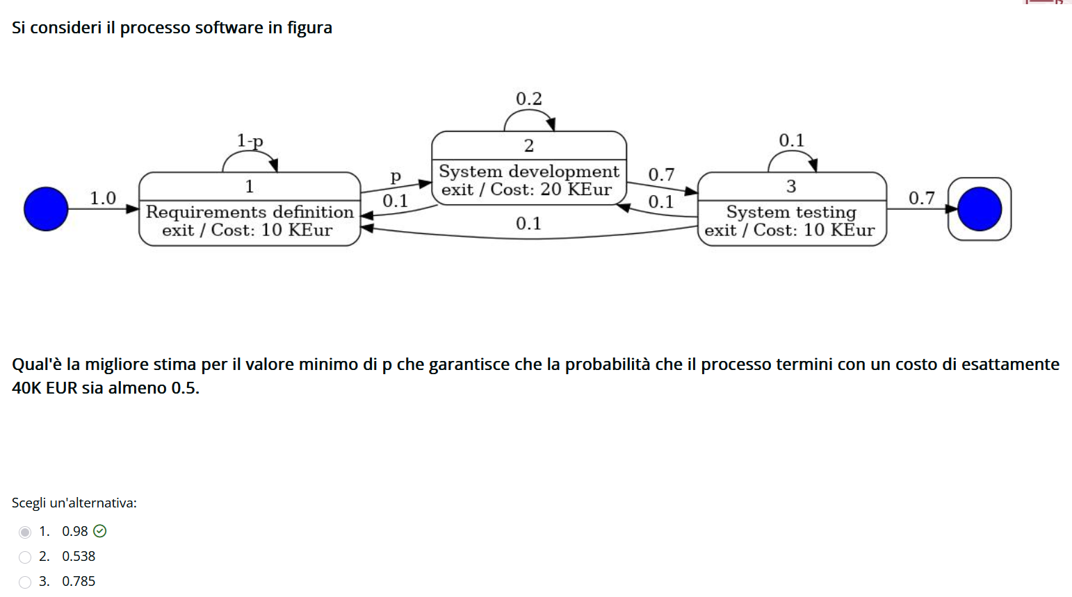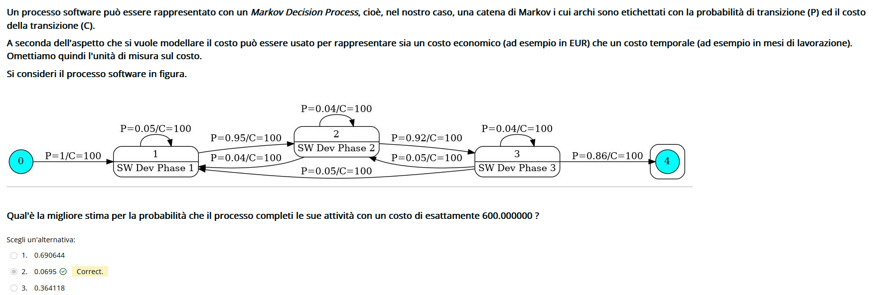 Si calcola il percorso completo, si moltiplica per gli archi 3 → 2 e 2 → 1 e si sommano, la risposta é sicuramente più alta di quel valore e quasi sempre sta in ordine di grandezza 0.0…