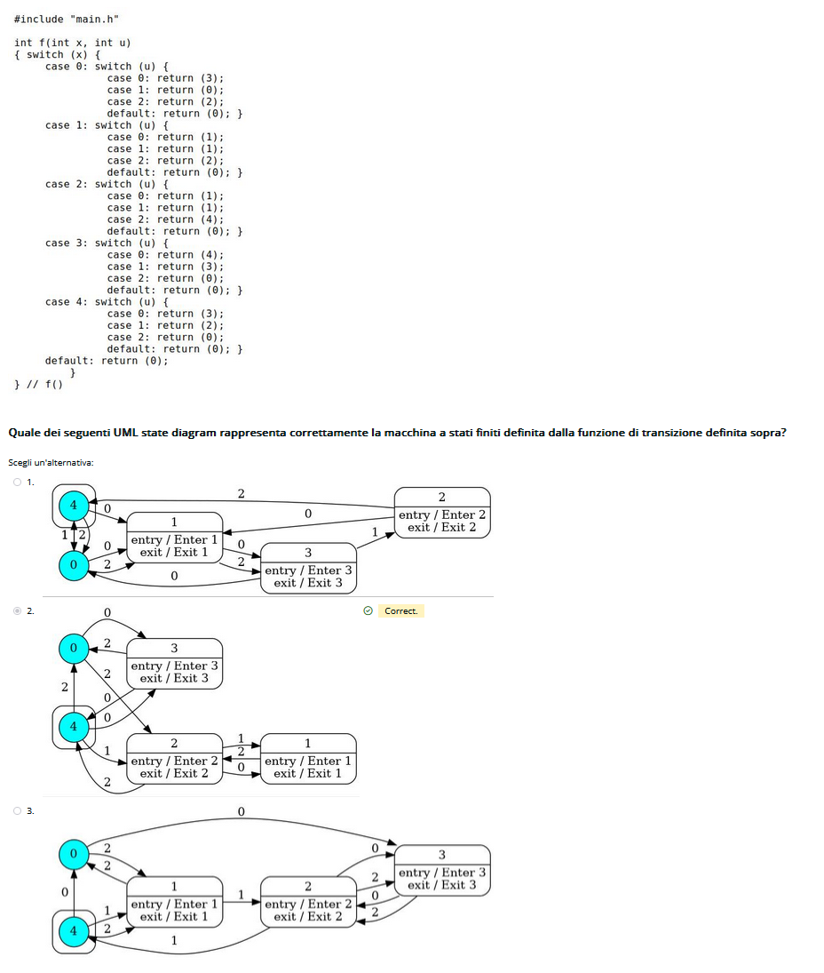 Capita anche che viene dato l’UML e dobbiamo scegliere la funzione. Il primo switch é sullo stato e il secondo sulle transizioni, boh sembra sempre abbastanza intuitivo tranne quando mette i numeri sugli archi a cazzo de cane pd.