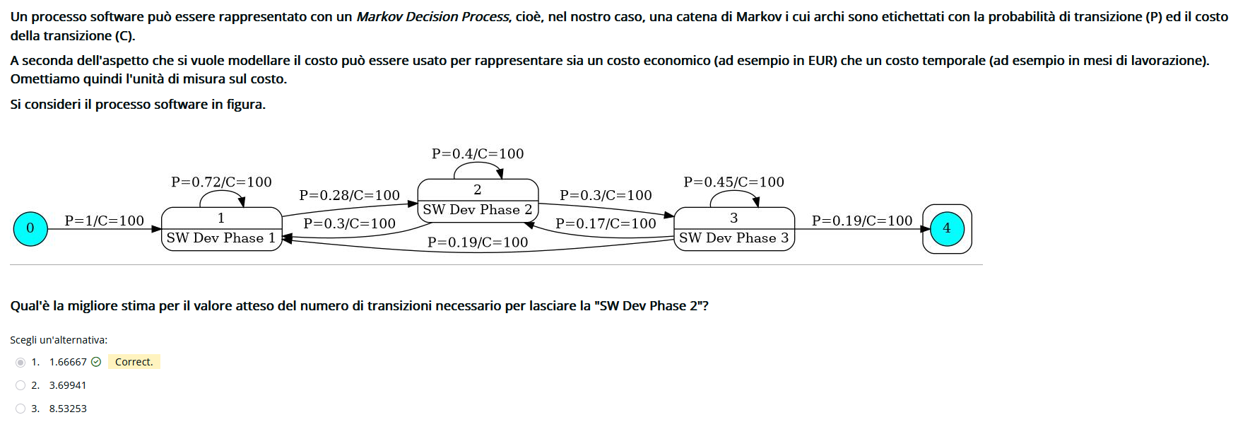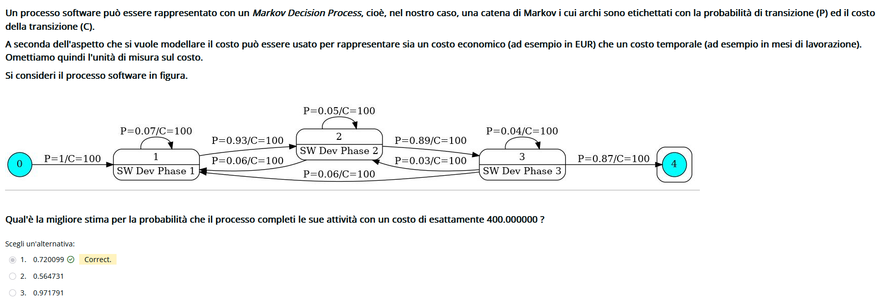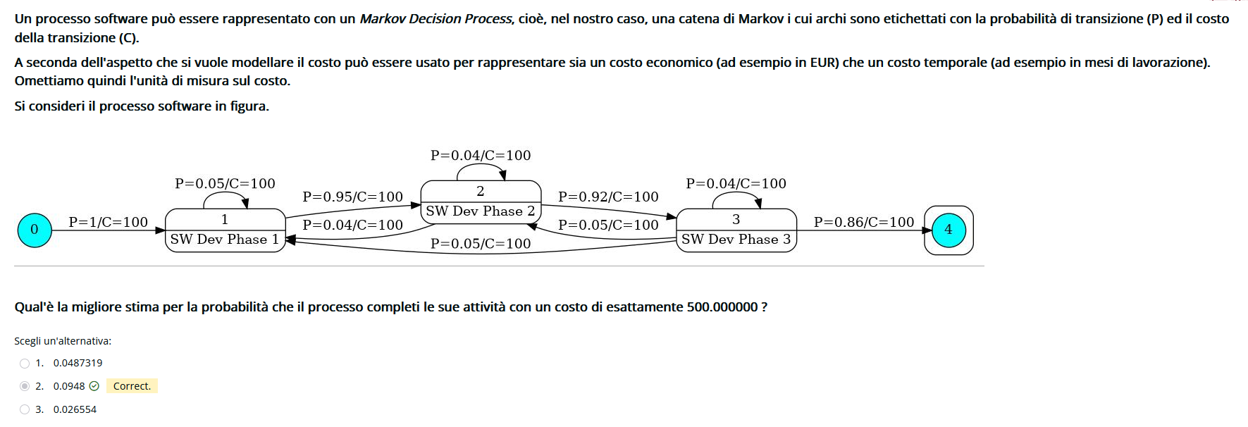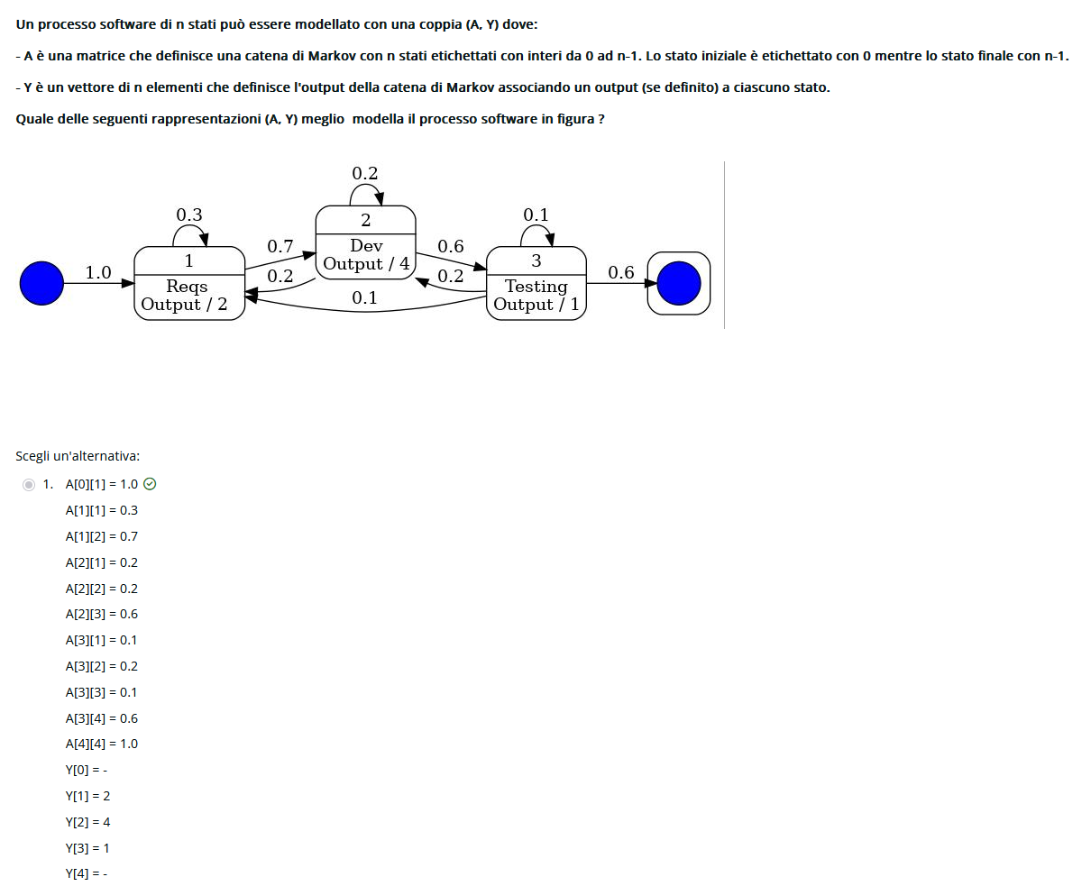 indica la probabilitá di muoversi da a mentre il vettore indica i return dei vari stati. Per fare prima conviene controllare prima i return di ogni opzione e scartare quelle sbagliate.