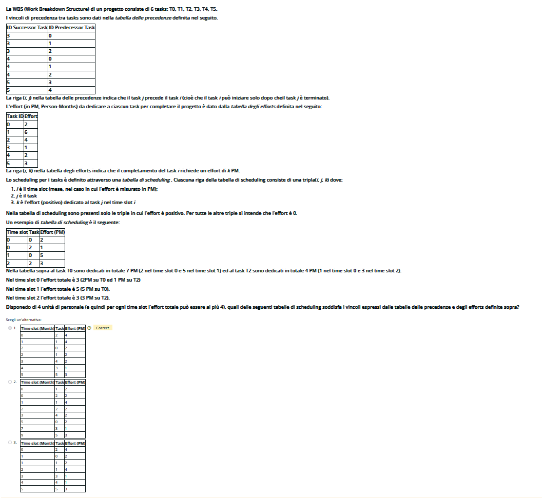 Spero si possano fare gli screenshot all’esame. Per ora la cosa che sembra piú utile é controllare prima le precedenze e poi vedere se vengono rispettare tutte le effort.